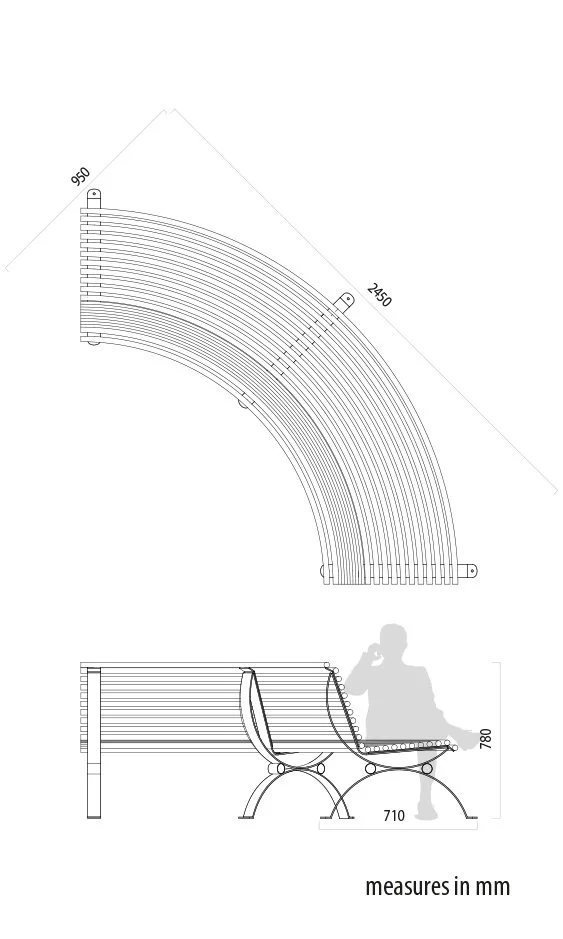 Panchina modello Positano convessa