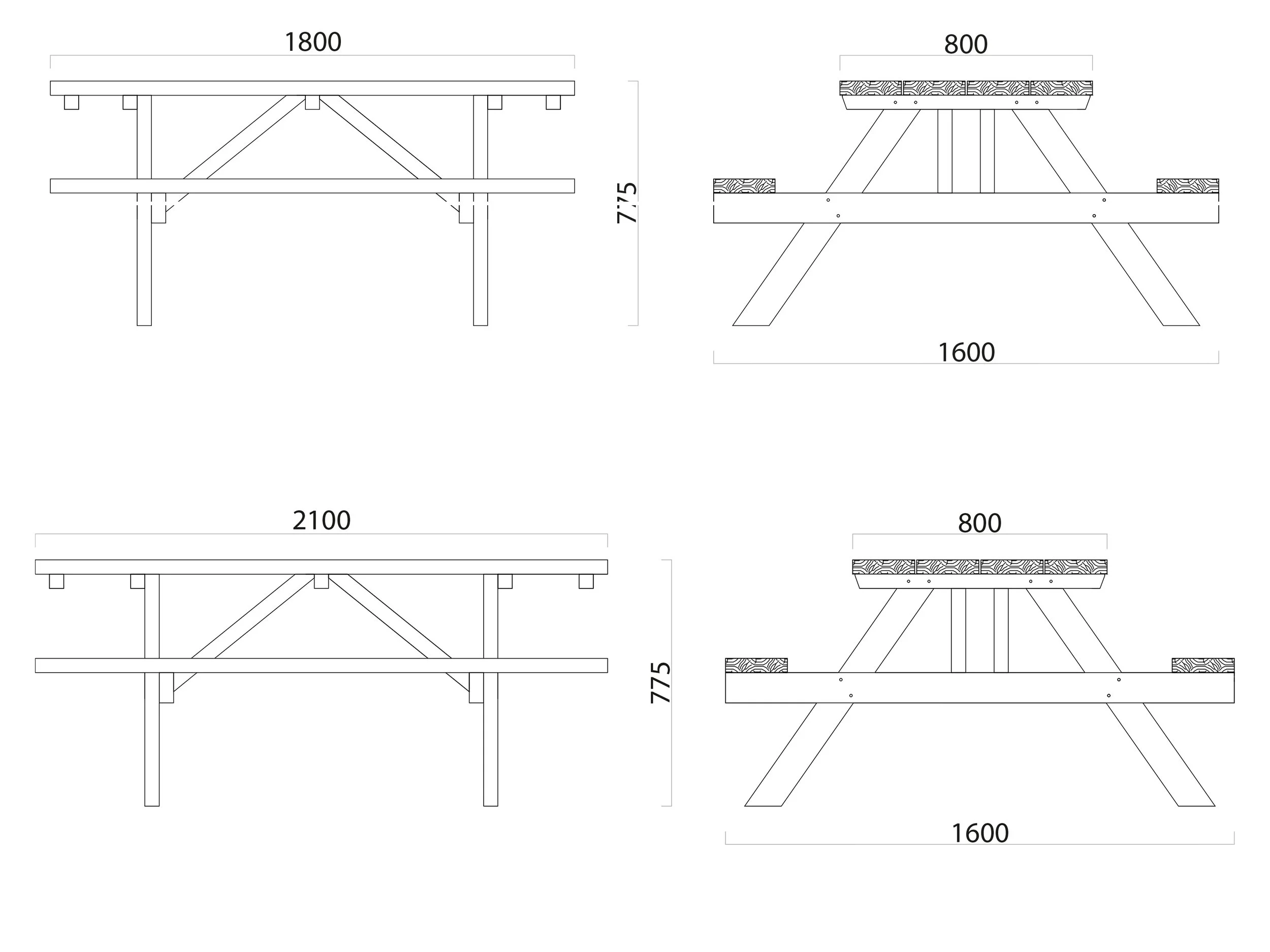 Tavolo da picnic in legno di pino composto da un piano superiore grande e due panche comode.