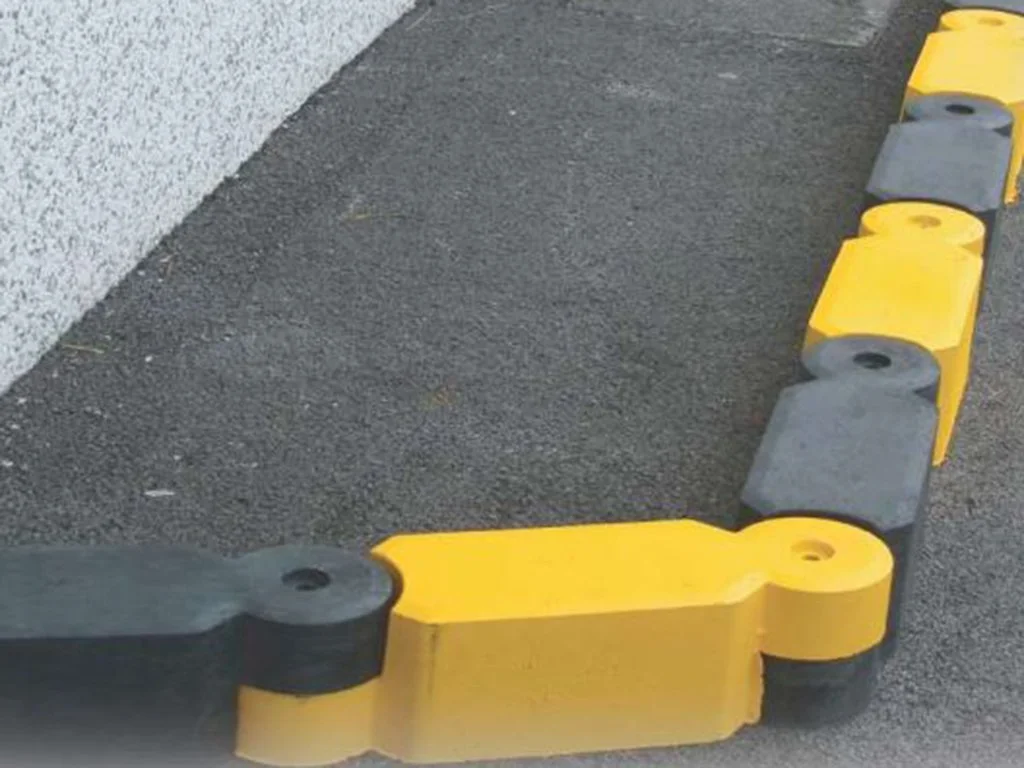 Cordolo Jolly di colore giallo realizzato in materiale riciclato, ideale per la realizzazione di rotatorie di qualsiasi diametro e di cordolature per marciapiedi. Di facile installazione e facile rimozione, lunga durata.