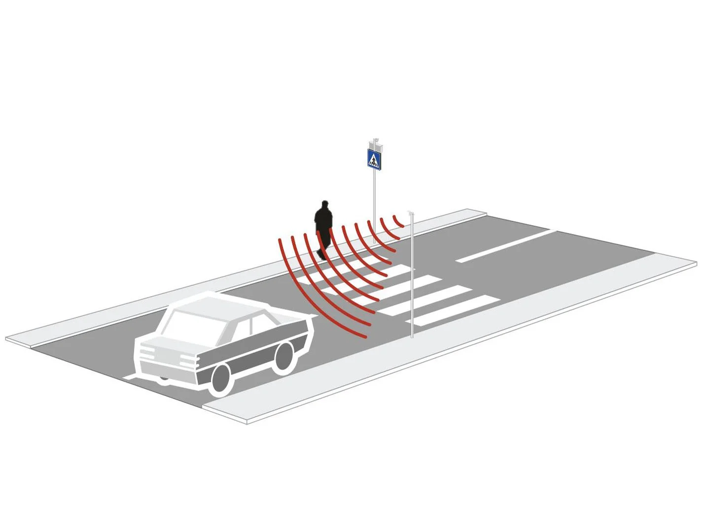 ll Salvapedone Radio è dotato di un sensore in grado di rilevare i pedoni in prossimità dell’attraversamento pedonale. Non appena l’utente si avvicina al palo il sensore entra in funzione e lo rileva, successivamente viene attivato il sistema di lampeggianti su entrambi i lati della strada, così da richiamare l’attenzione dei veicoli su entrambi i sensi di marcia.